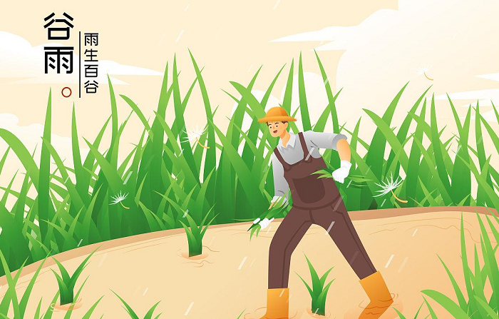 谷雨将谷和雨联系起来,蕴涵着“雨生百谷”之意,反映了“谷雨”的农业气候意义。谷雨时节的气候特点主要是多雨,此时的雨水不仅多且下得急,所谓雨生百谷,正是播种的好时机。谷雨时节也是越冬作物冬小麦的抽穗扬花期,春播作物玉米、棉花的幼苗期,这些作物都需要充沛的雨水来促进发育生长。